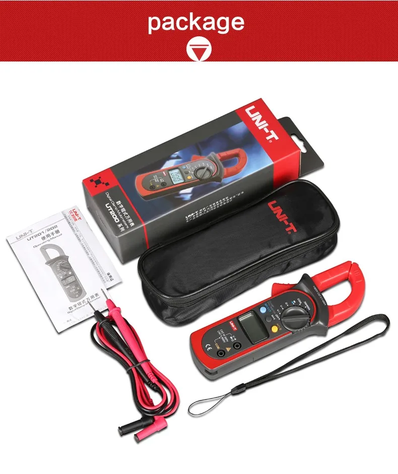 > Выделите <Эта серия представляет собой цифровой зажим начального уровня UNI-T. Это отличный выбор для измерения жилого и коммерческого провода питания. UT202 и UT204A поставляются с точечным контактным температурным зондом, идеально подходит для работы в HVAC.