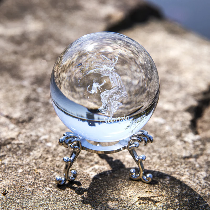 Название продукта: от H & D (6 см лазерной гравировкой для малышей с принтом «Скорпион» Созвездие шар с подставкой 3D миниатюрные стеклянные модели Сфера орнамент домашний декор подарок на день рождения