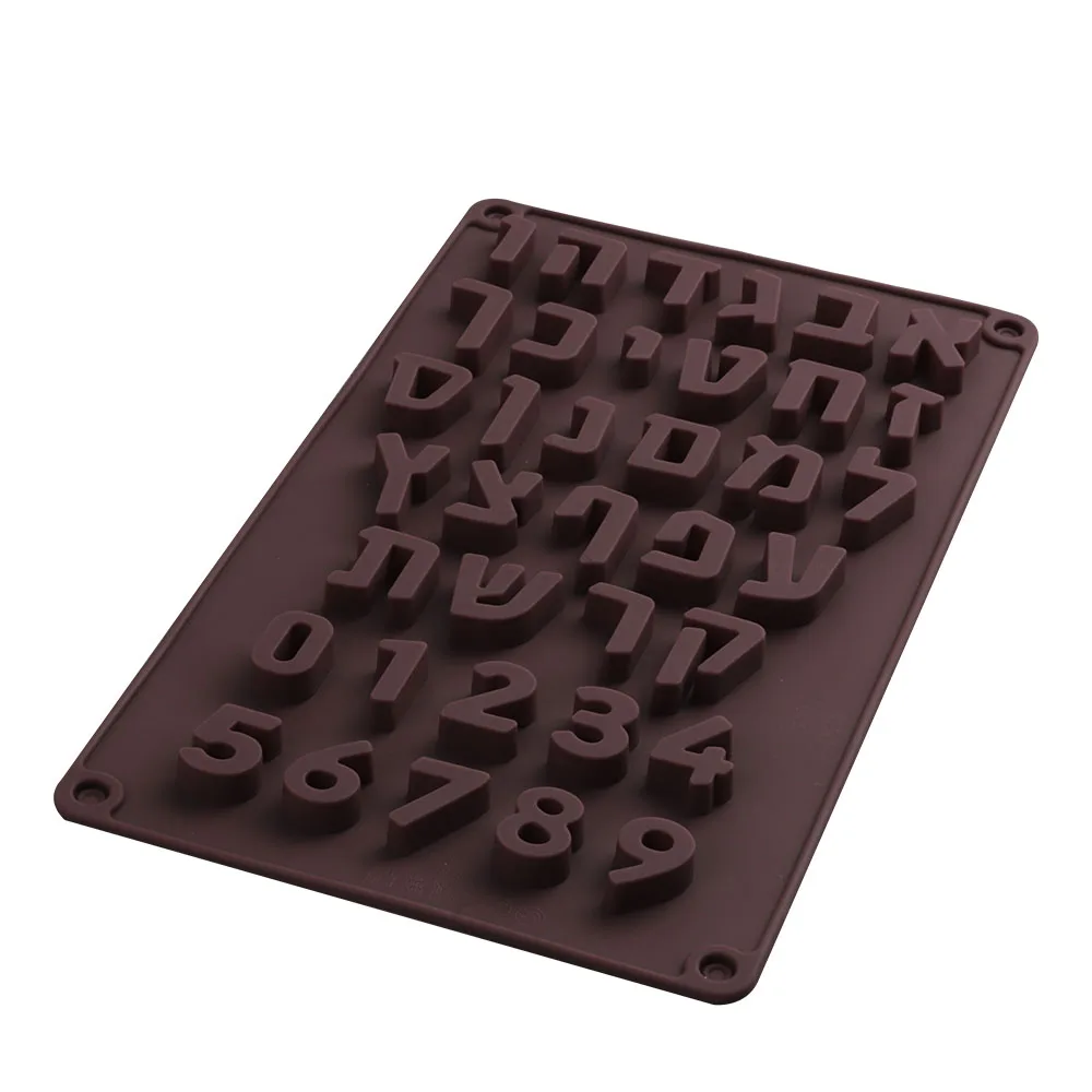 3D Hebrew Letters Silicone Mold Alphabet Chocolate Numbers Mold Cake Fondant Baking Form Cake Decorating Tools Tray Cookie Mould