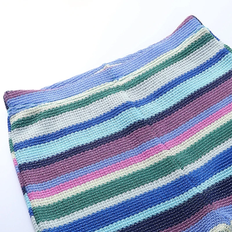 Женские трикотажные длинные брюки с высокой талией, разноцветные обтягивающие брюки в полоску