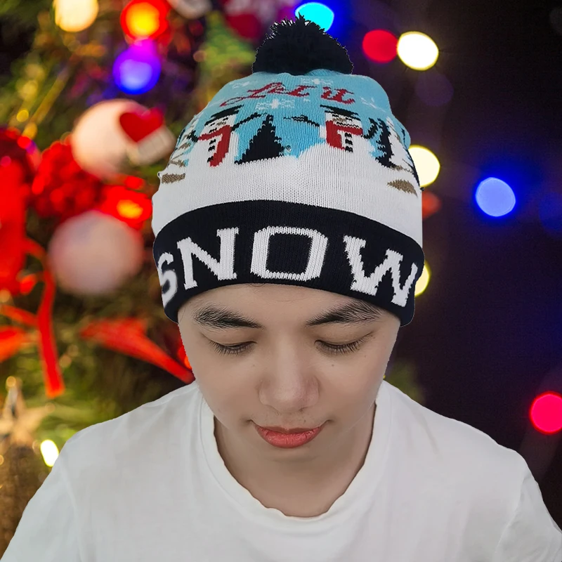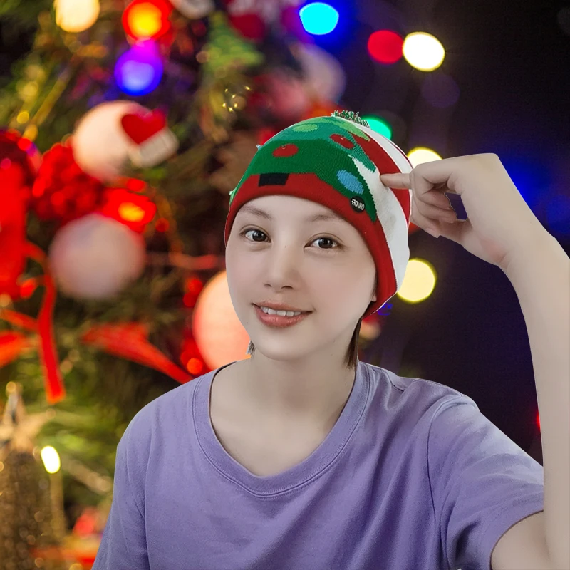 1 шт. Рождество Санта-Клауса рождественские шапки со светодиодной подсветкой шапочка вязаная шапка для детей и взрослых, Рождественская шапка, на Новый год и Рождество дерево с утолщённой меховой опушкой, хороший подарок