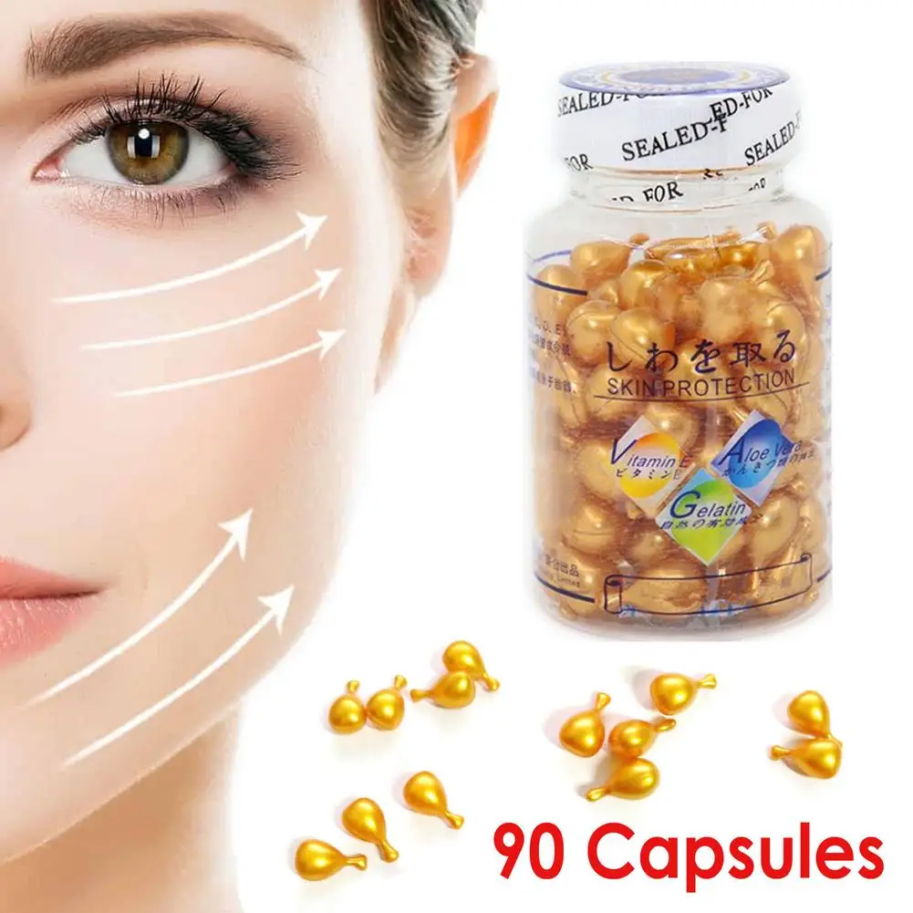 90 шт/бутылка витамин е экстракт капсулы против морщин Отбеливающий Крем дневной и ночной Сыворотка для лица увлажняющая против старения укрепляющая кожа