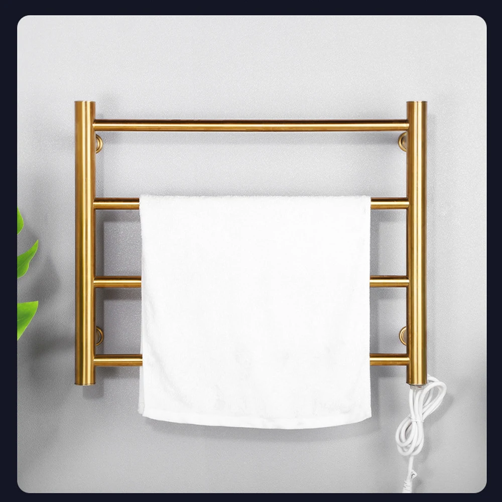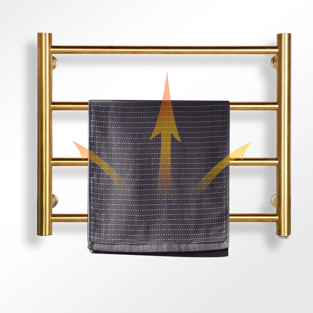 «Он имеет 4 изогнутых стержня из нержавеющей стали, стоит около 21,25 ”высокий x 17,7” широкий и способен держать 4 полотенца. Теплое полотенце этого размера позволит всей семье насладиться теплым полотенцем.