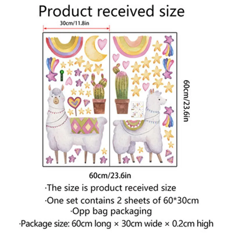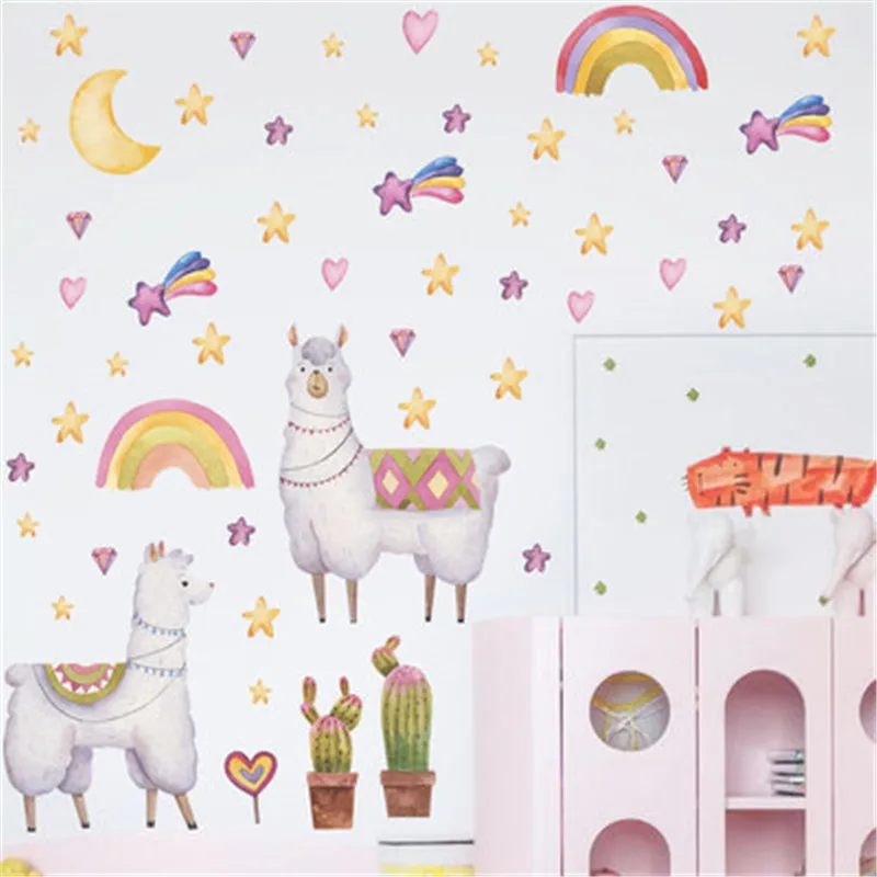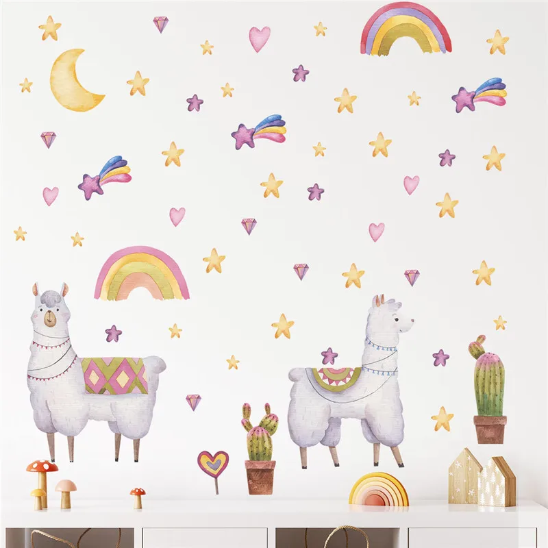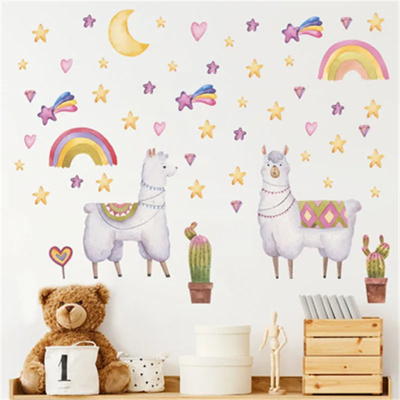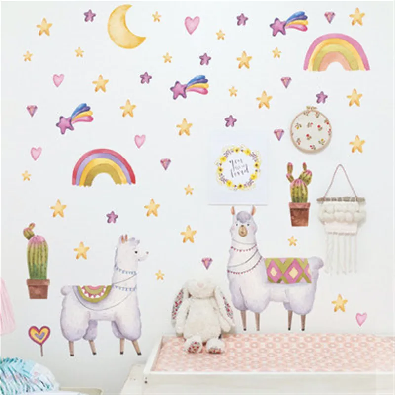 Альпака радужные звёздные настенные Стикеры для детских комнат скандинавский стиль Детские художественные Декоративные наклейки для маленьких девочек Декоративные наклейки для комнаты
