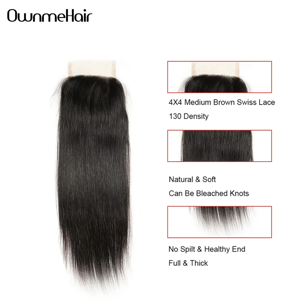 Transparent Straight Human Hair Swiss Lace Pre Plucked Natural Hair Line Hair 4x4 HD Lace Closure