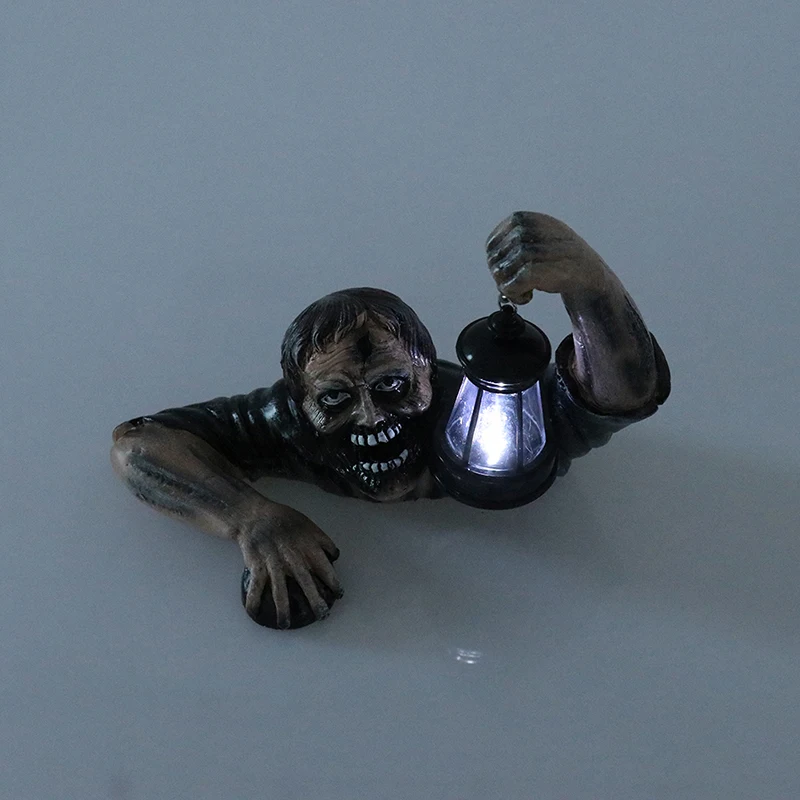 2. Фонарь для хранения зомби: На этом изделии изображен немертвый зомби, поднимающийся с его кладбища, держащий фонарь. Детали этого товара-это дыхание и, несомненно, будет центральным элементом Вашего внутреннего или крытого пространства для патио. В этом продукте используются батареи с кнопками, и вы можете включить свет ночью.