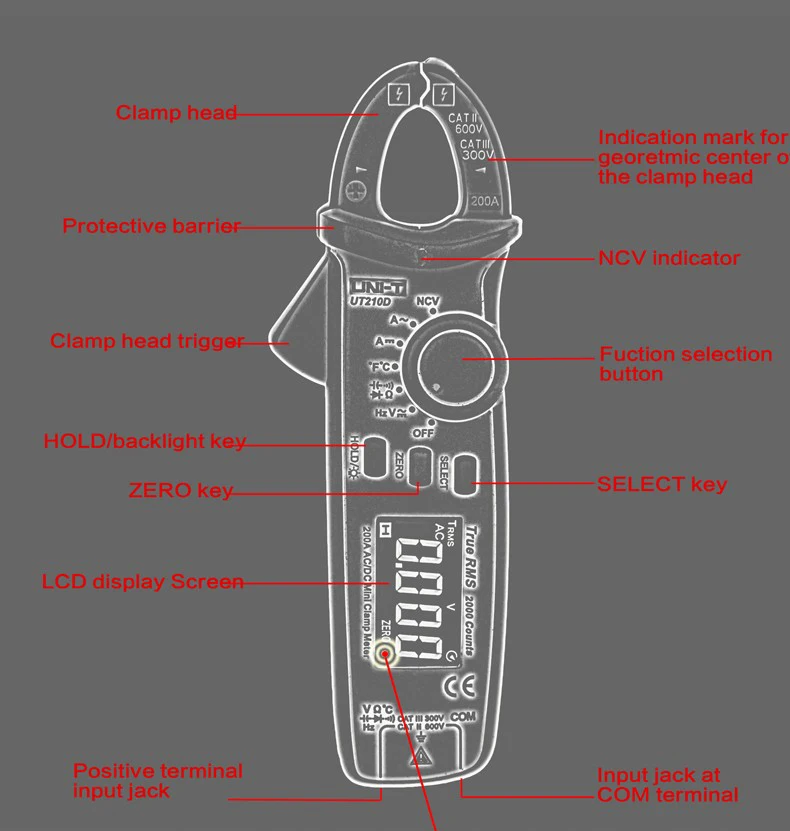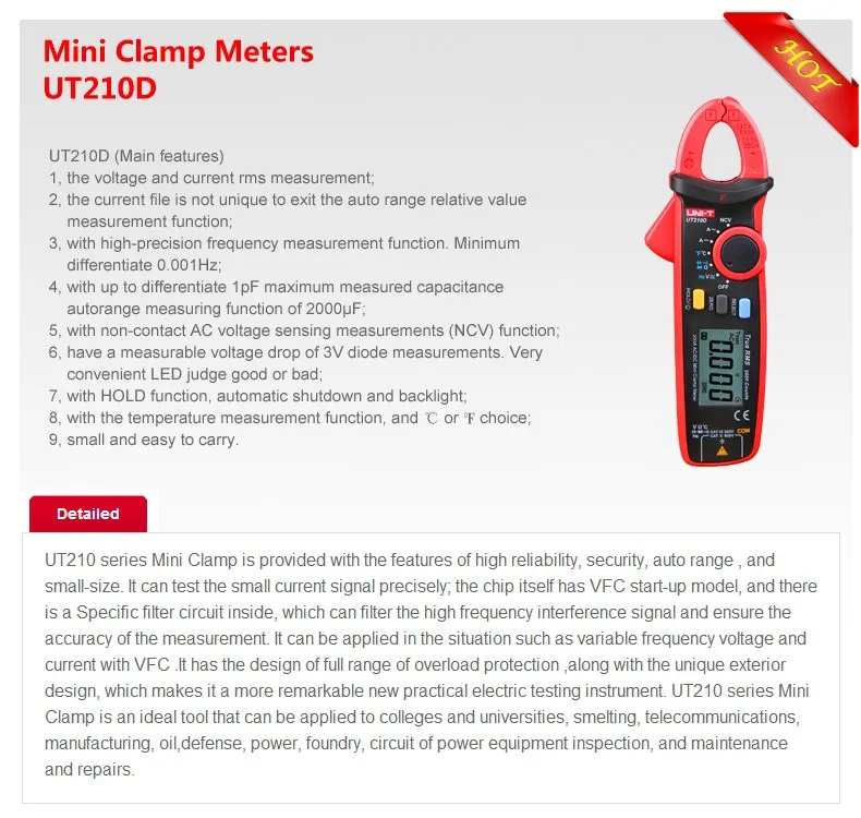 UNI-T UT210D цифровой клещи истинный RMS сопротивление напряжения емкость мультиметр Измерение температуры Авто диапазон электрических