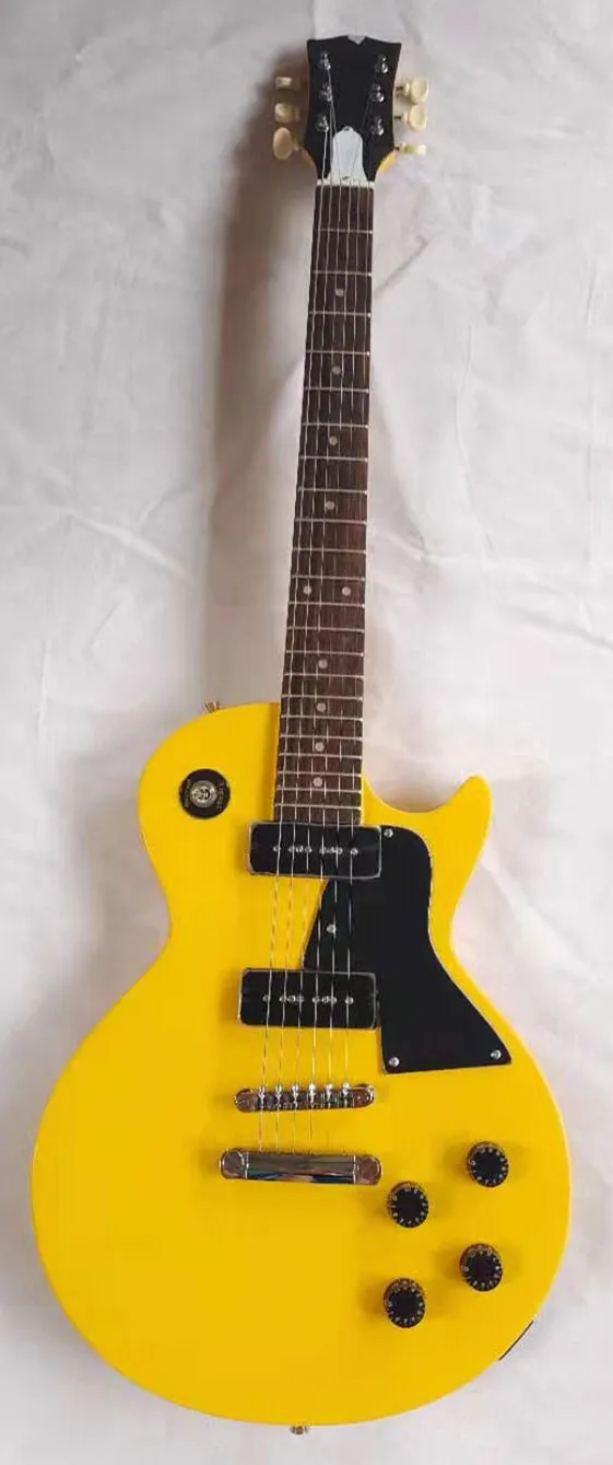 Высококачественная электрогитара, желтый, корпус из красного дерева, гриф из розового дерева, в наличии, бесплатная доставка