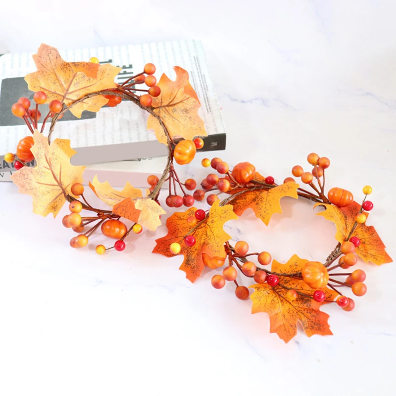 День благодарения Урожай Свеча кольцо Хэллоуин Декор Искусственный Тыква Кленовый лист цветок венки двери висит стол украшения