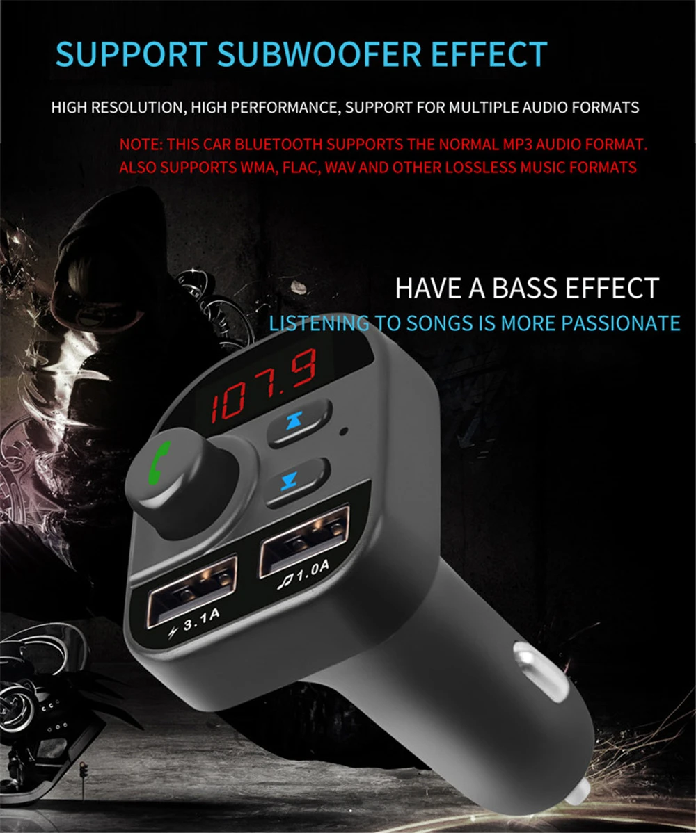 Автомобильное зарядное устройство fm-передатчик Bluetooth аудио двойной USB Автомобильный MP3-плеер Авторадио Хан...Купить сейчас
