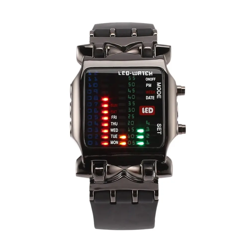 Водостойкие часы модный светодиодный цветной светильник кварцевые наручные часы, Резиновая лента с отверстиями мягко подходит для вашего запястья,