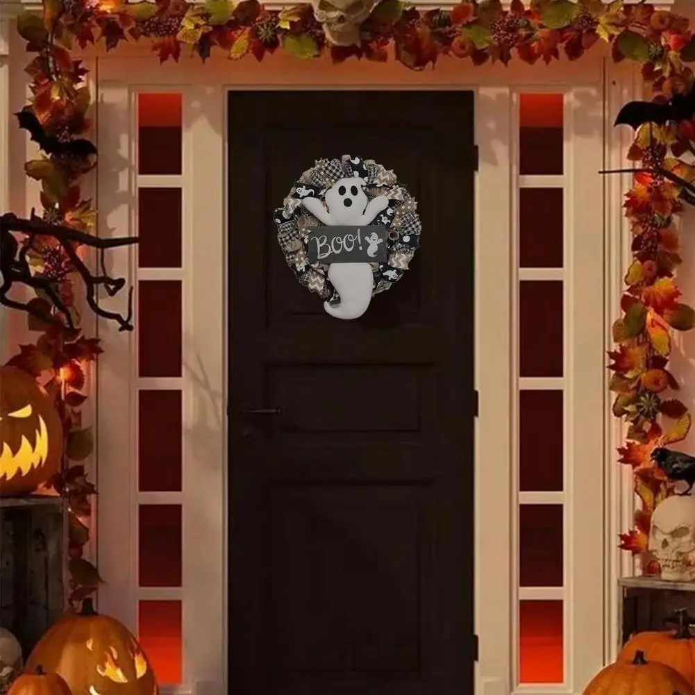 Хэллоуин венок Бу! Фермерский дом-призрак венок открытый передняя дверь Крытый Настенный декор Хэллоуин украшения на открытом воздухе