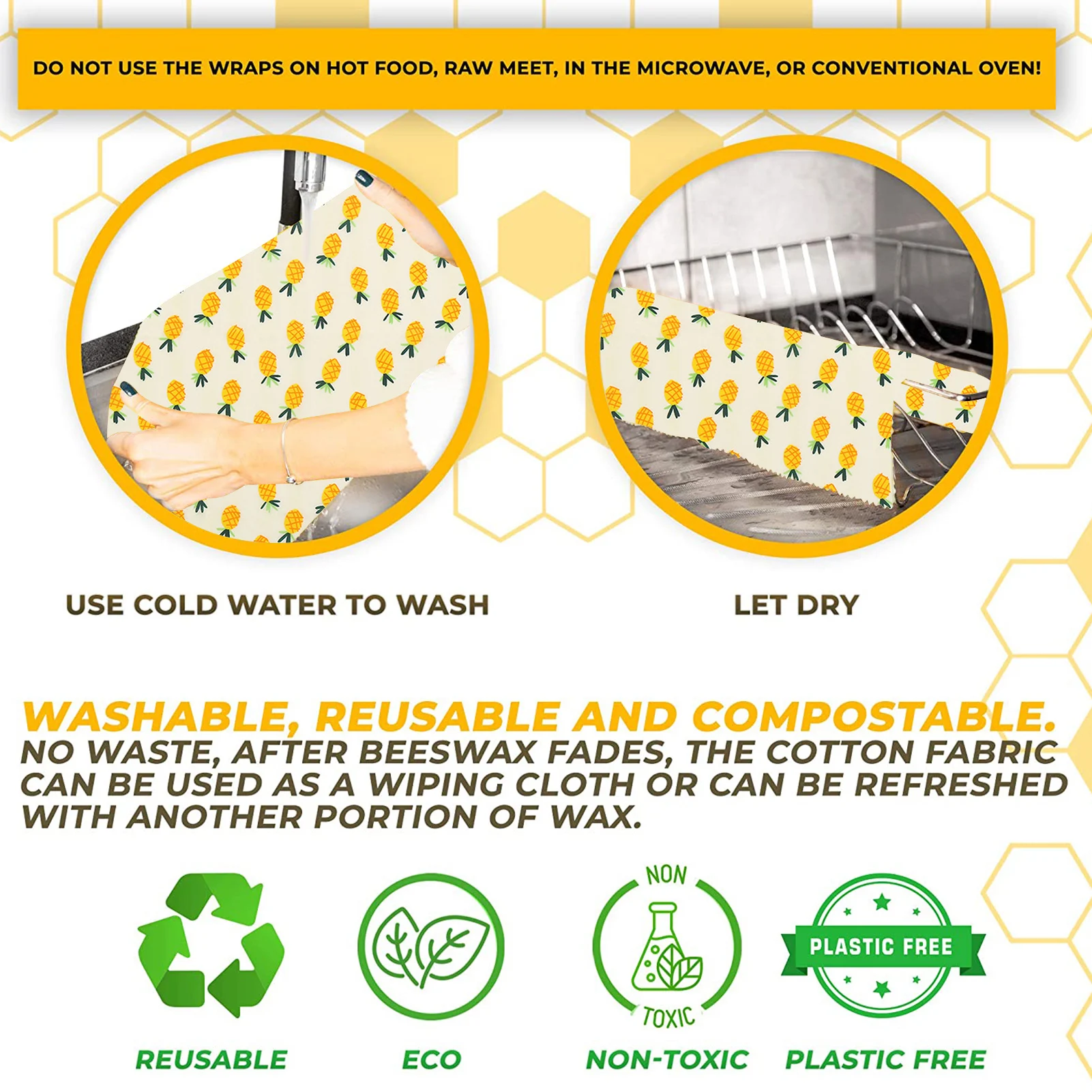 2. Моющиеся, многоразовые и для совместного использования. Используйте свои теплые руки, чтобы смягчить пленку и положить ее в миску, контейнер или кусок пищи. Поскольку бумага для воска пчелы остывает, она создает уплотнение и может хранить еду естественным образом. Стирать в прохладной воде с мягким мылом и сушить на воздухе.