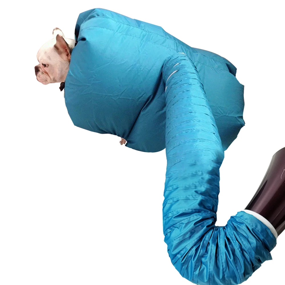 Поверните фен на теплую или низкую температуру и скорость воздуха до высокой. Сушилка для собак будет сломаться. Воздух должен проходить через отверстия для ног, шею и хвост.
