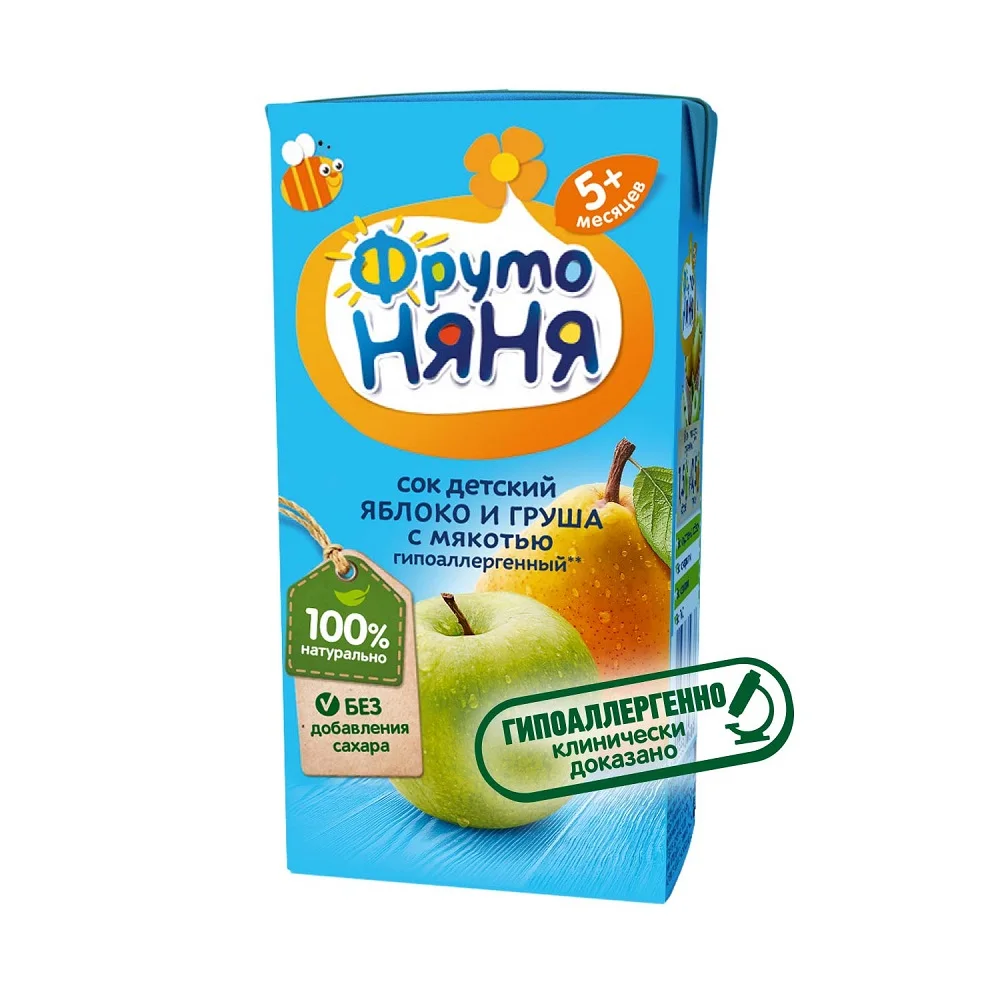 Сок ФрутоНяня яблоко, груша, с мякотью с 5 мес., 0,2л