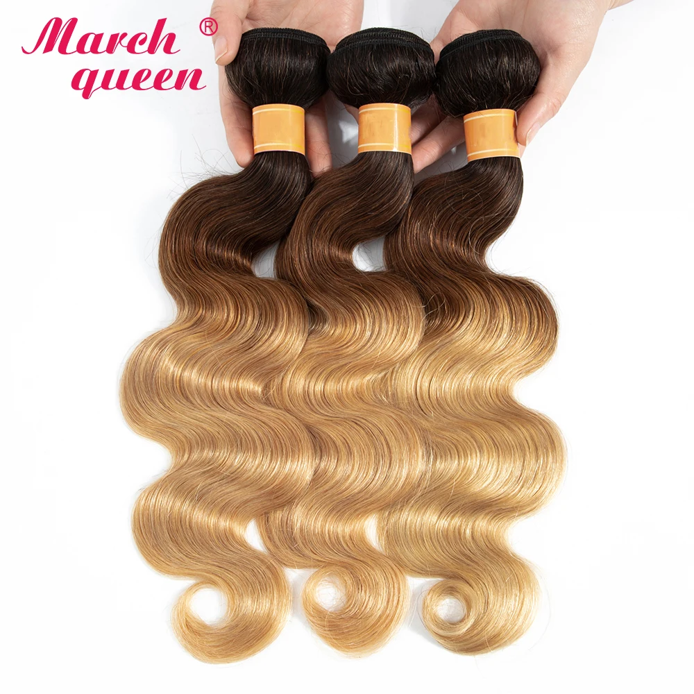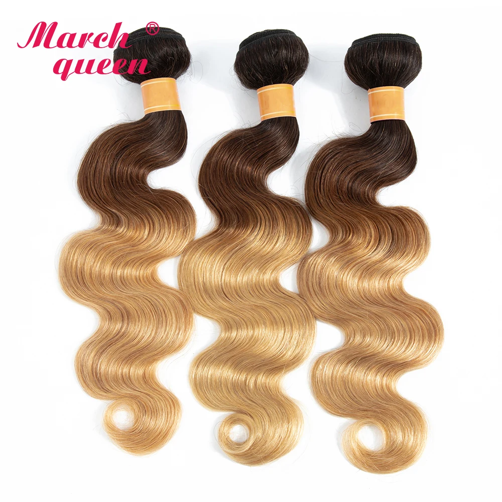 Marchqueen бразильские волнистые волосы, для придания объема волос плетение 1/3/4 пряди человеческих волос пряди блондинка 1B/4/27 Remy Пряди человеческих волос для наращивания из натуральных волос