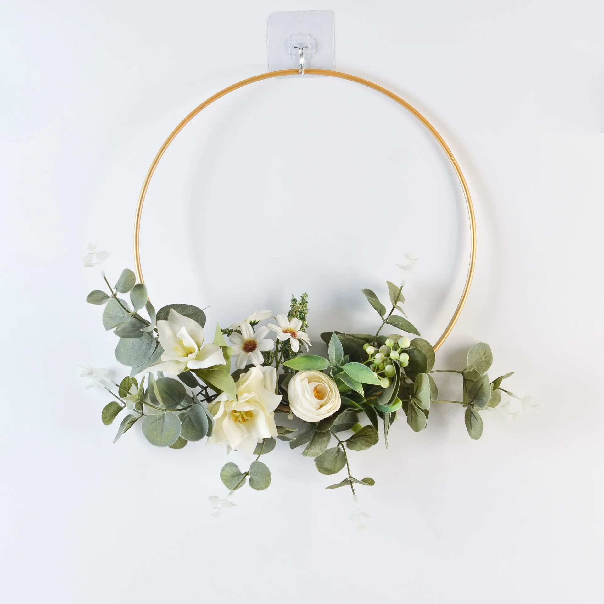 Настенные Висячие венки для скандинавских Инс, металлическое кольцо с эвкалиптом, искусственный цветок, роза, Гортензия, украшение для дома, свадьбы