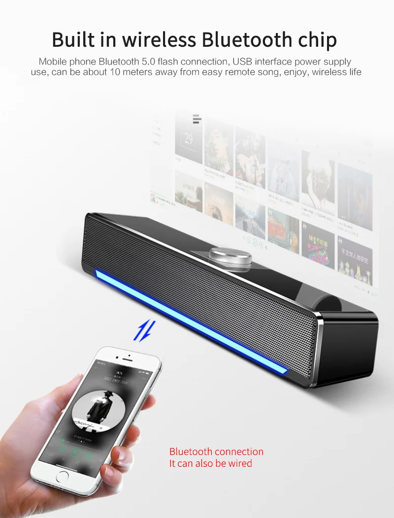 [Bluetooth + wired version]: four unit stereo + DSP audio technology, volume adjustment, power switch, light switch, Bluetooth 5.0