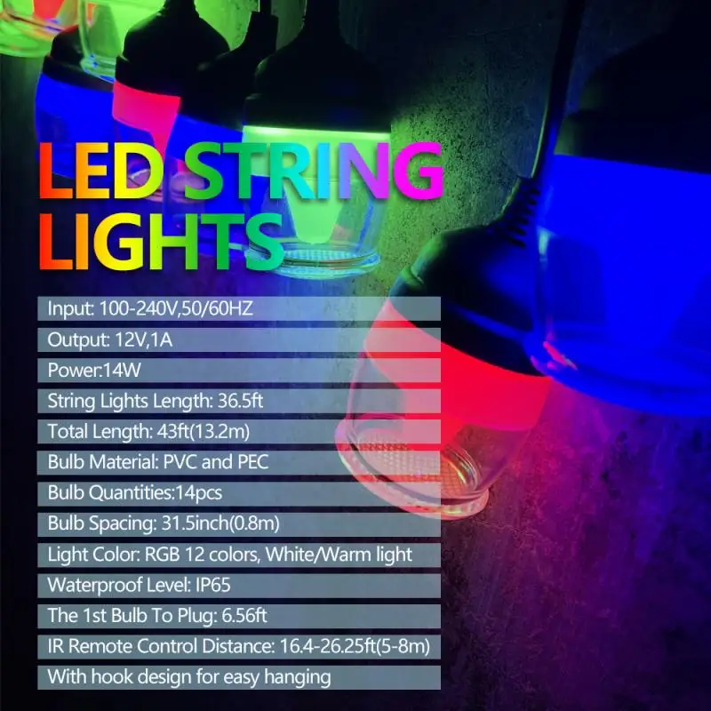 1.【PERFECT SHATTERPROOF светодиодный BULBS】 43ft наружные струнные светильники для патио изготовлены из сверхмощной герметичной технологии + Небьющийся пластик 14 висячие светодиодный лампы. Эти огни являются водонепроницаемыми, а прорезиненный гибкий шнур толще, чем традиционный шнур. Делайте все, что хотите, с помощью нашего светодиодный светильника!