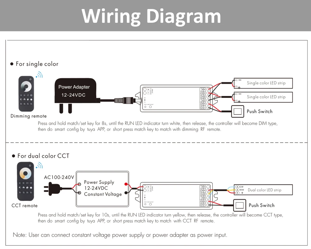 *** For Single Color LED Strip: RT1/RT6/RT8 /Push Swith etc.