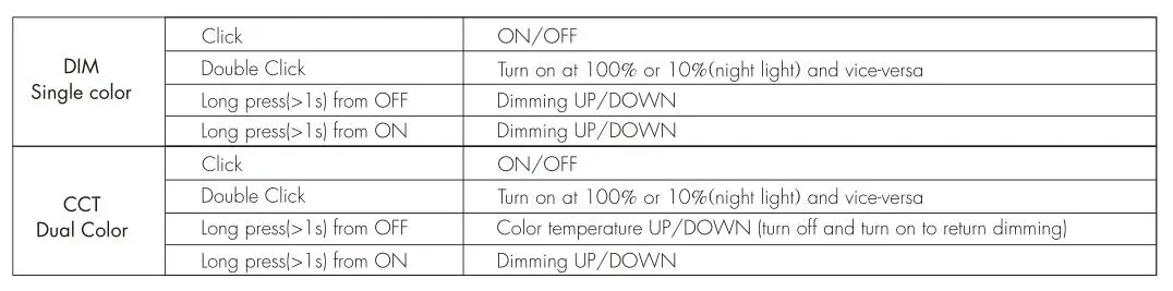 and turn corresponding light type color (White: DIM, Yellow: CCT. and in Tuya APP, you can find SKYDANCE-DIM or SKYDANCE-CCT device