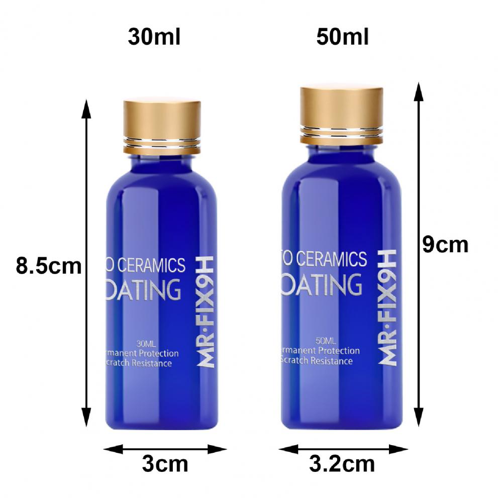 The length of the 30ml liquid ceramic coat is 8.5cm and the width is 3cm. The length of the 50ml liquid ceramic coat is 9cm and the width is 3.2cm.