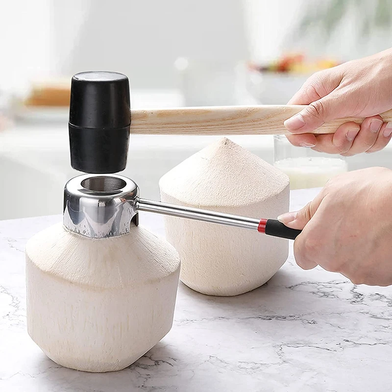 [Удобно держать] набор инструментов для открывалка для кокоса поставляется с экологически чистым Пластиковым Молотком с нескользящей резиновой ручкой, амортизирующим дизайном, удобно держать.