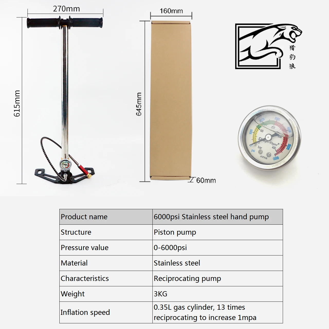 [Более высокое давление] Максимальное давление может достигать 6000psi, который используется для баллонов пневматического оружия, цилиндров для дайвинга, пейнтбольных пистолетов и накачки шин.