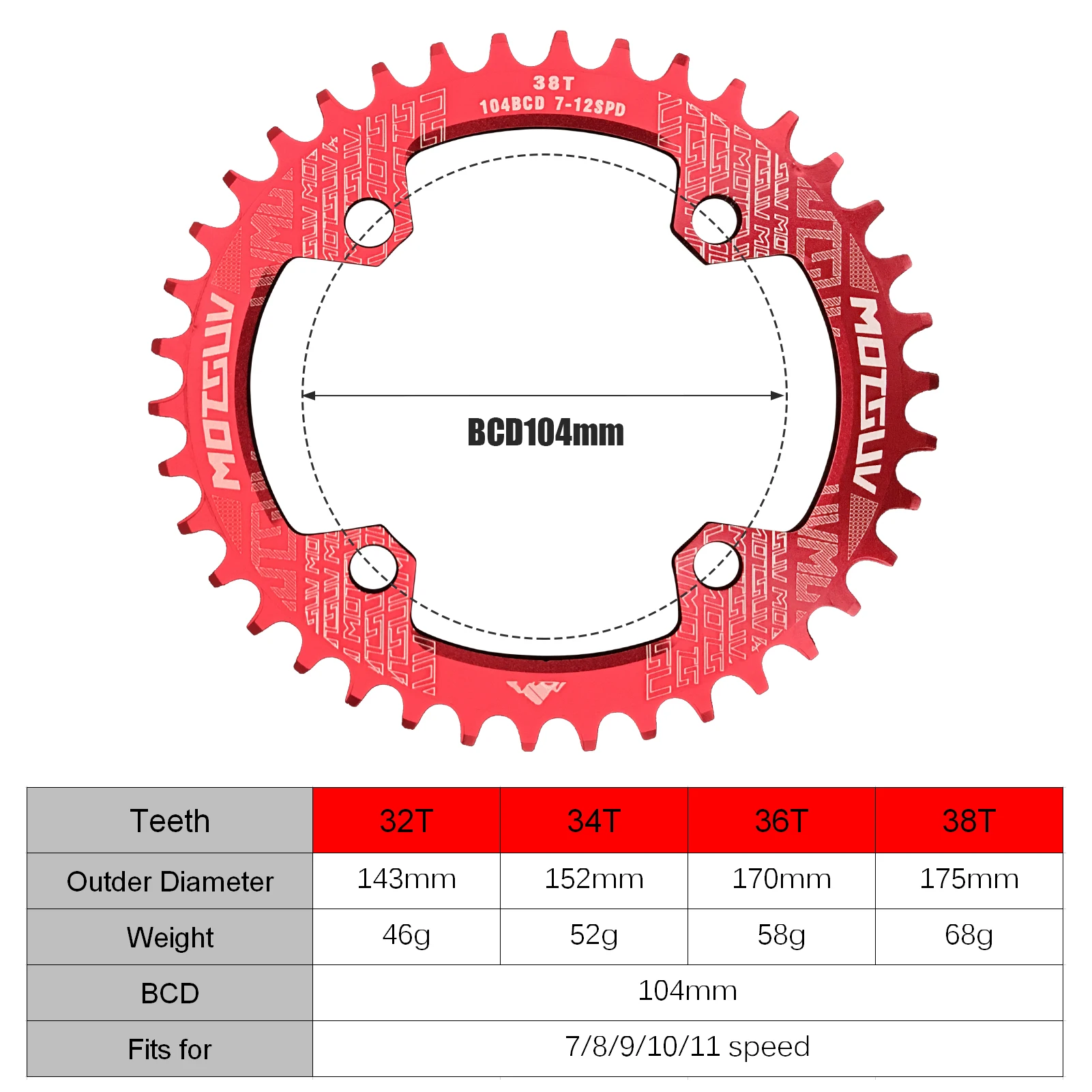 Зубцы: 32T / 34T / 36T / 38T (опционально)