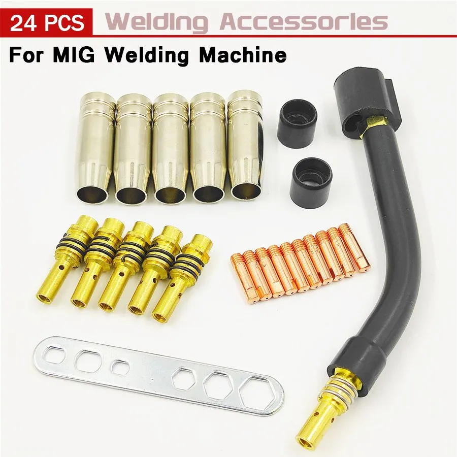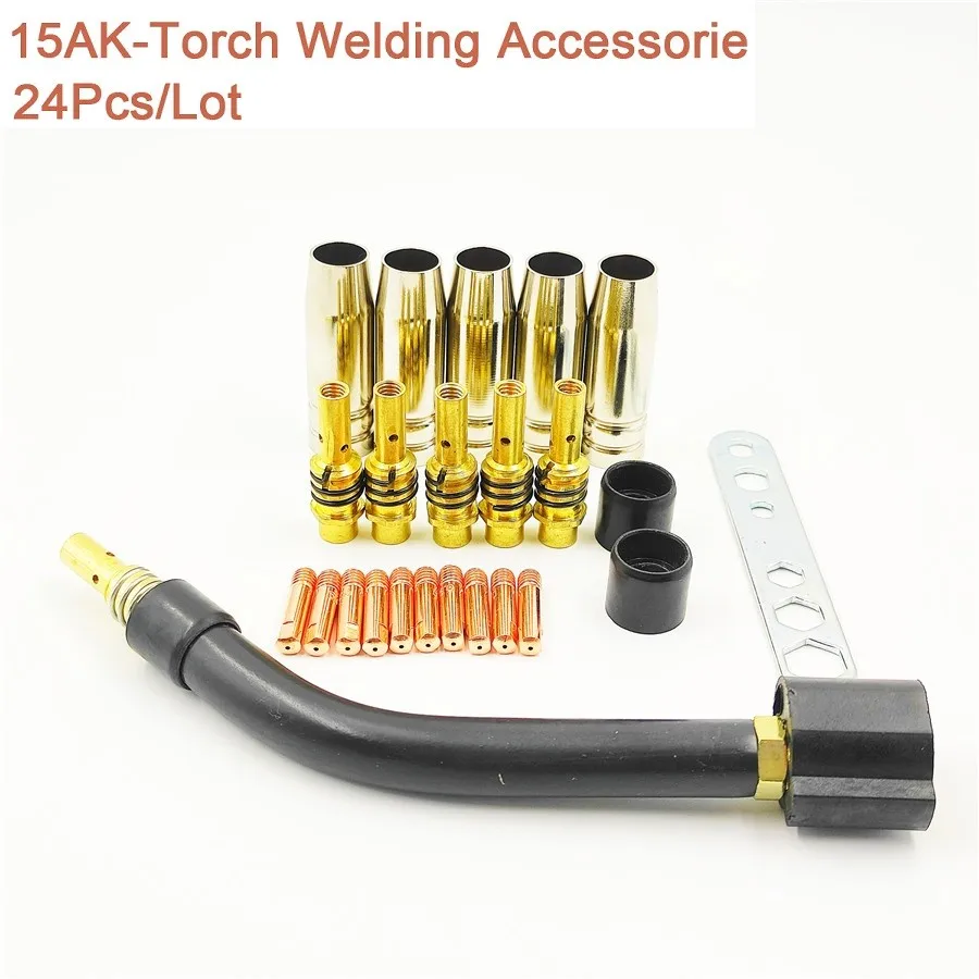 24 шт./компл. 15AK для Binzel фонарь расходные материалы электрод и щит чашки и кончики стержней гусиная шея изгиб для MIG сварочный аппарат