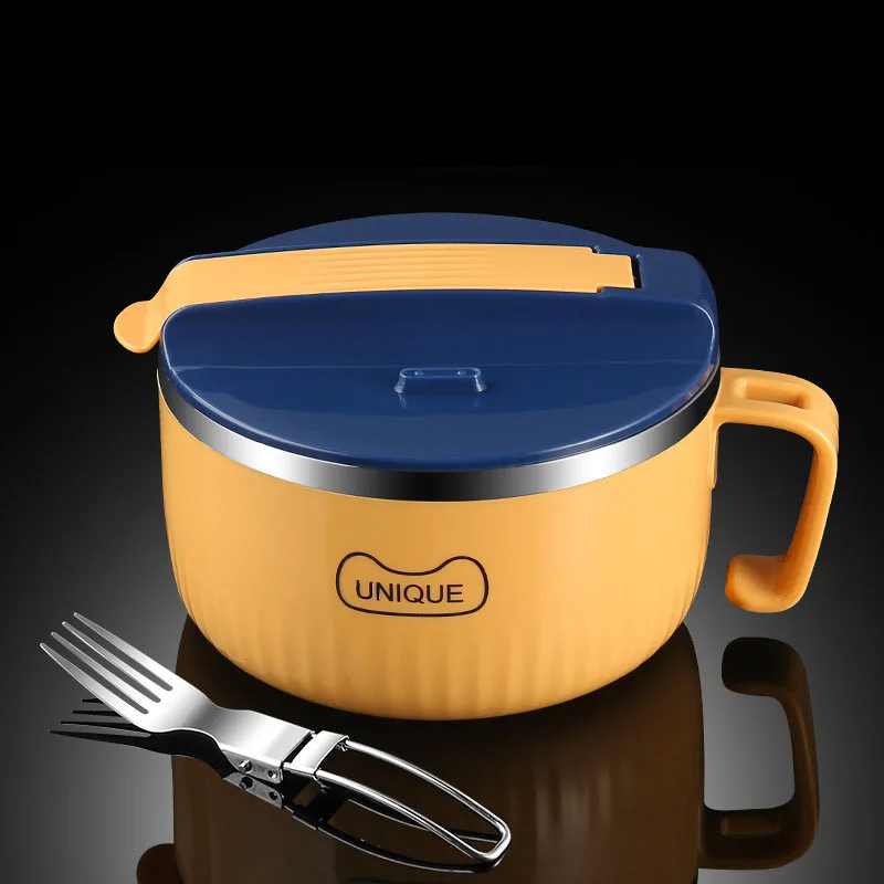 Чаша с ручкой и крышкой, подходит для использования в помещении и на открытом воздухе. Вы можете есть лапшу быстрого приготовления, салат, рис, суп и многое другое.
