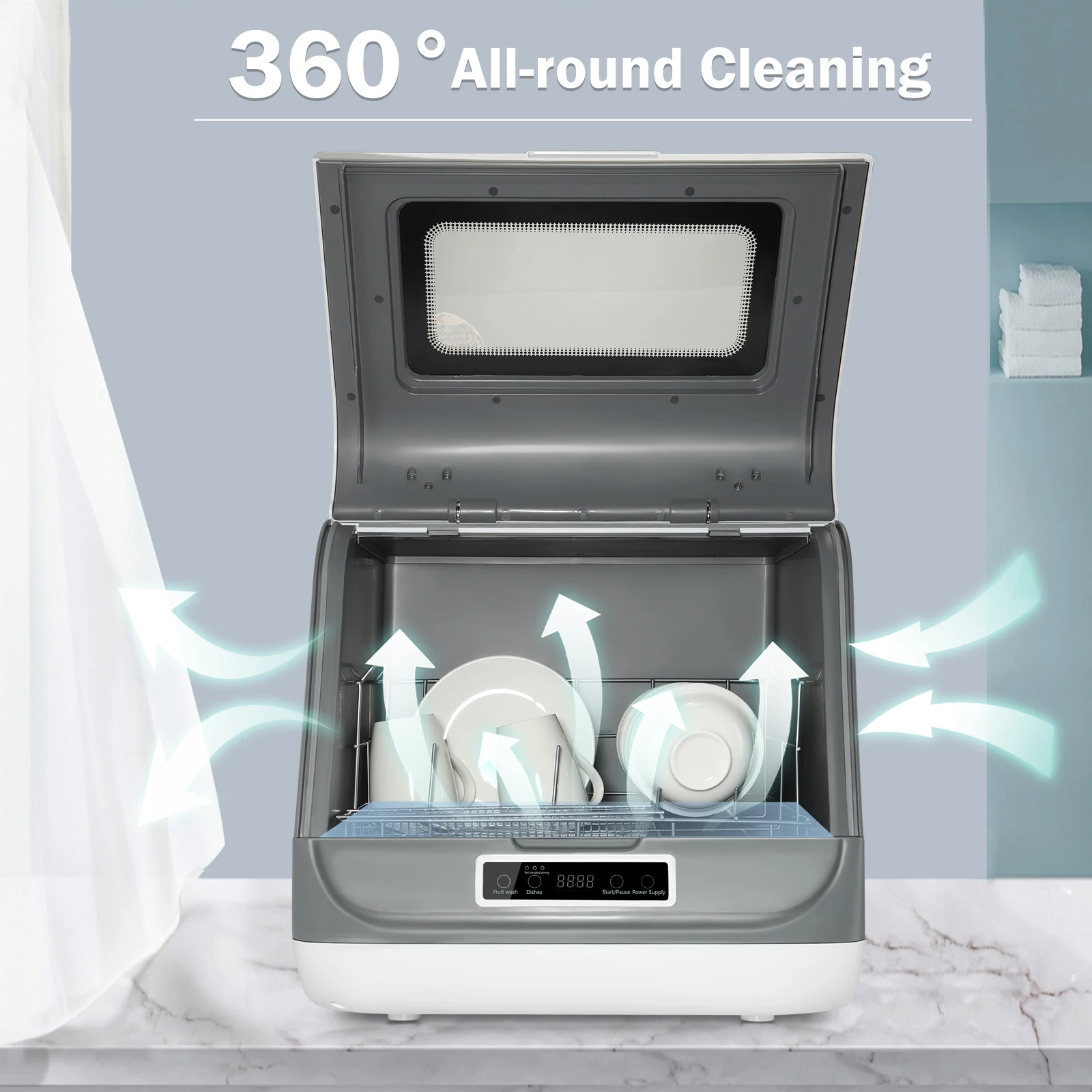 С помощью интеллектуального управления, одна кнопка может мыть блюда, под умной автоматической системой управления и многоуровневой высокой температуры очистки до 70 градусов высокой температуры воды, не требуется моющее средство, И эффект очистки-это уровень. Тип рабочего стола не требует установки и не занимает места, поэтому вы можете перемещаться по своему усмотрению.
