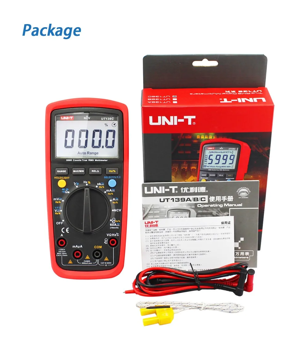 UNI-T UT139C Цифровой мультиметр Авто Диапазон истинный RMS измеритель конденсатор тестер Ручной 6000 граф вольтметр температура