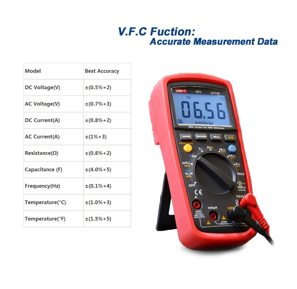 Цифровой мультиметр Серии UT139 true RMS разработан с функцией VFC, которая позволяет LPF иметь лучшую точность при высокочастотном интерфейсе. Его функция NCV также может эффективно проверять Электрический статус, не связавшись с измеряемым объектом