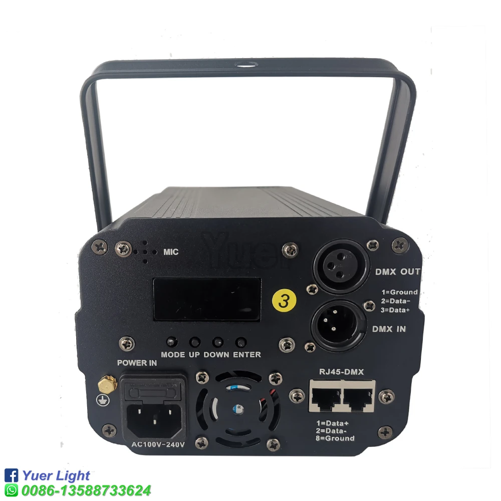 Безопасность и интеллект: светильник сигнала не выключается, сигнал DMX и сигнал ПК можно переключать. С функцией защиты от лучей светильник, если есть неисправность гальванометра, он отключит светильник, когда излучается только один светильник.