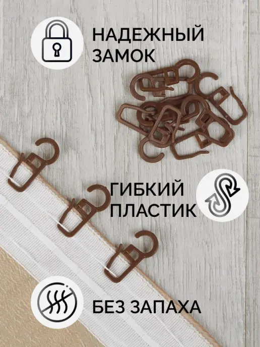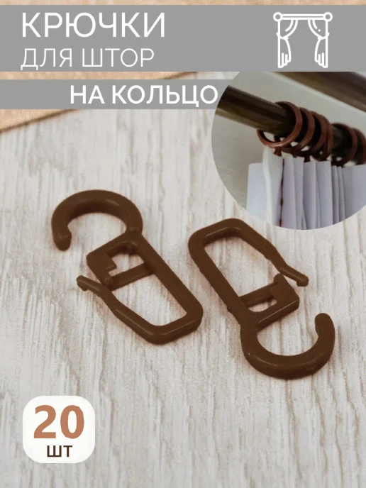 Крючок для крепления штор, карниза скрытые 20 шт коричневый