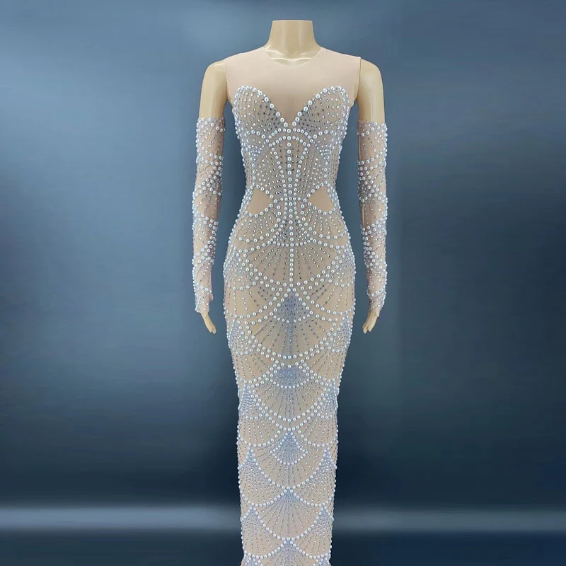 Стразы, жемчуг, платья для дня рождения, выпускной вечер, платье с длинными рукавами, вечерний танец, эластичный костюм