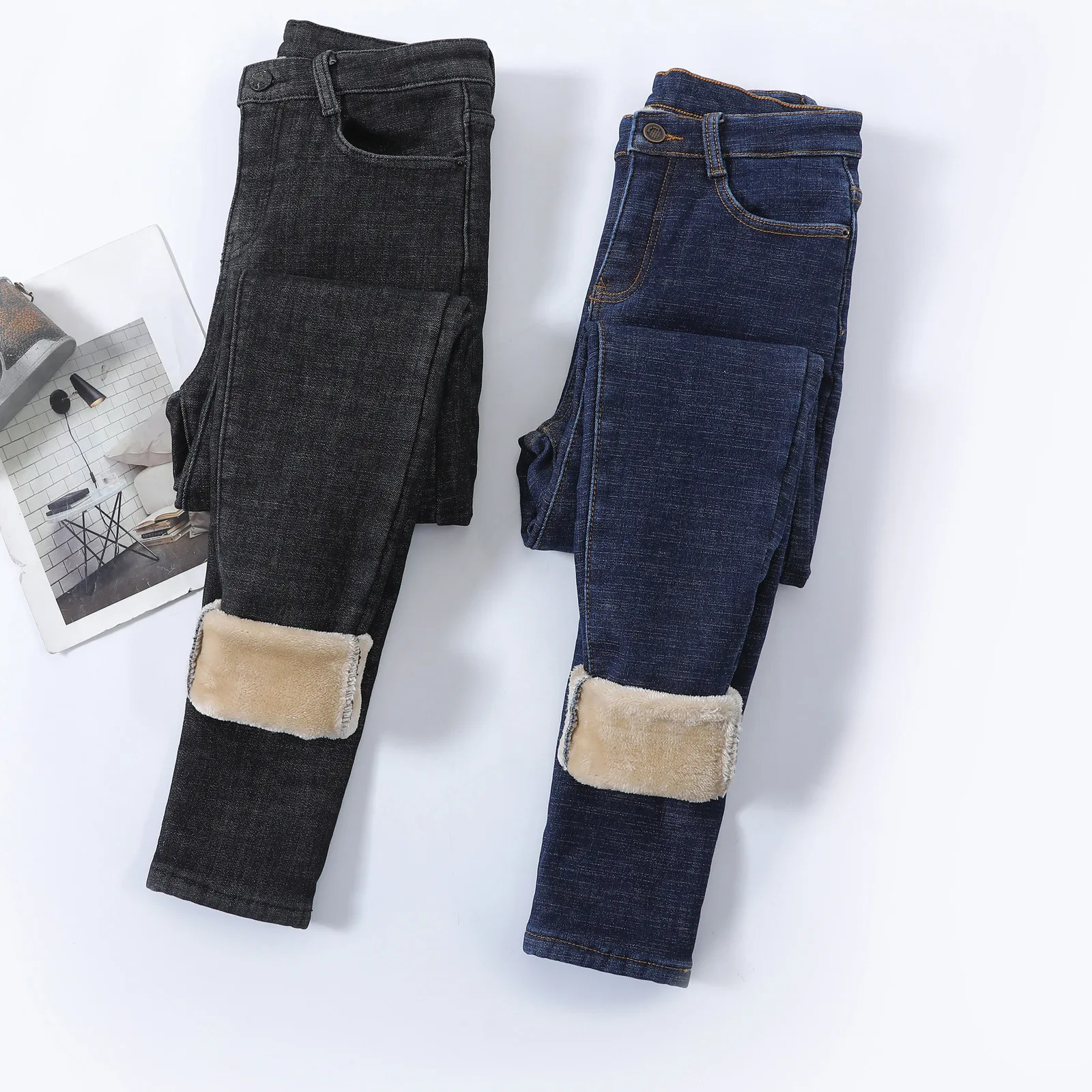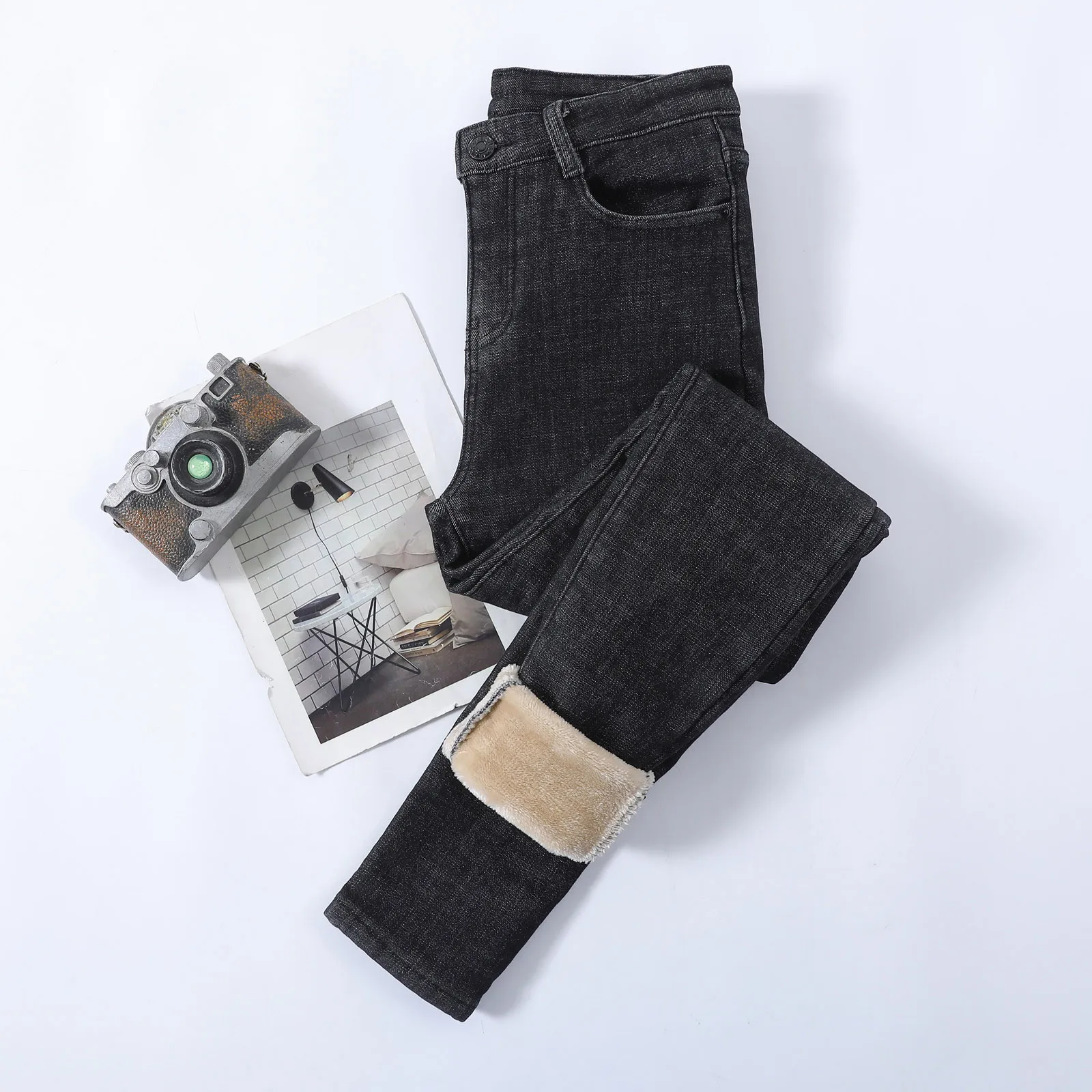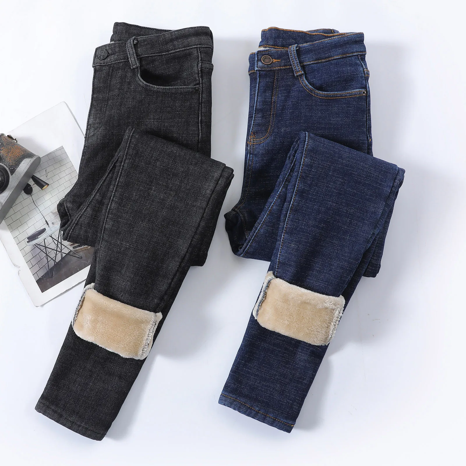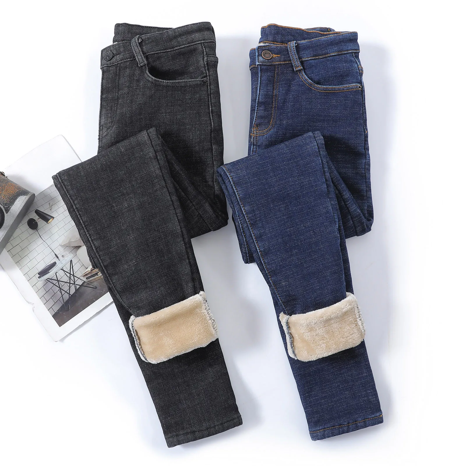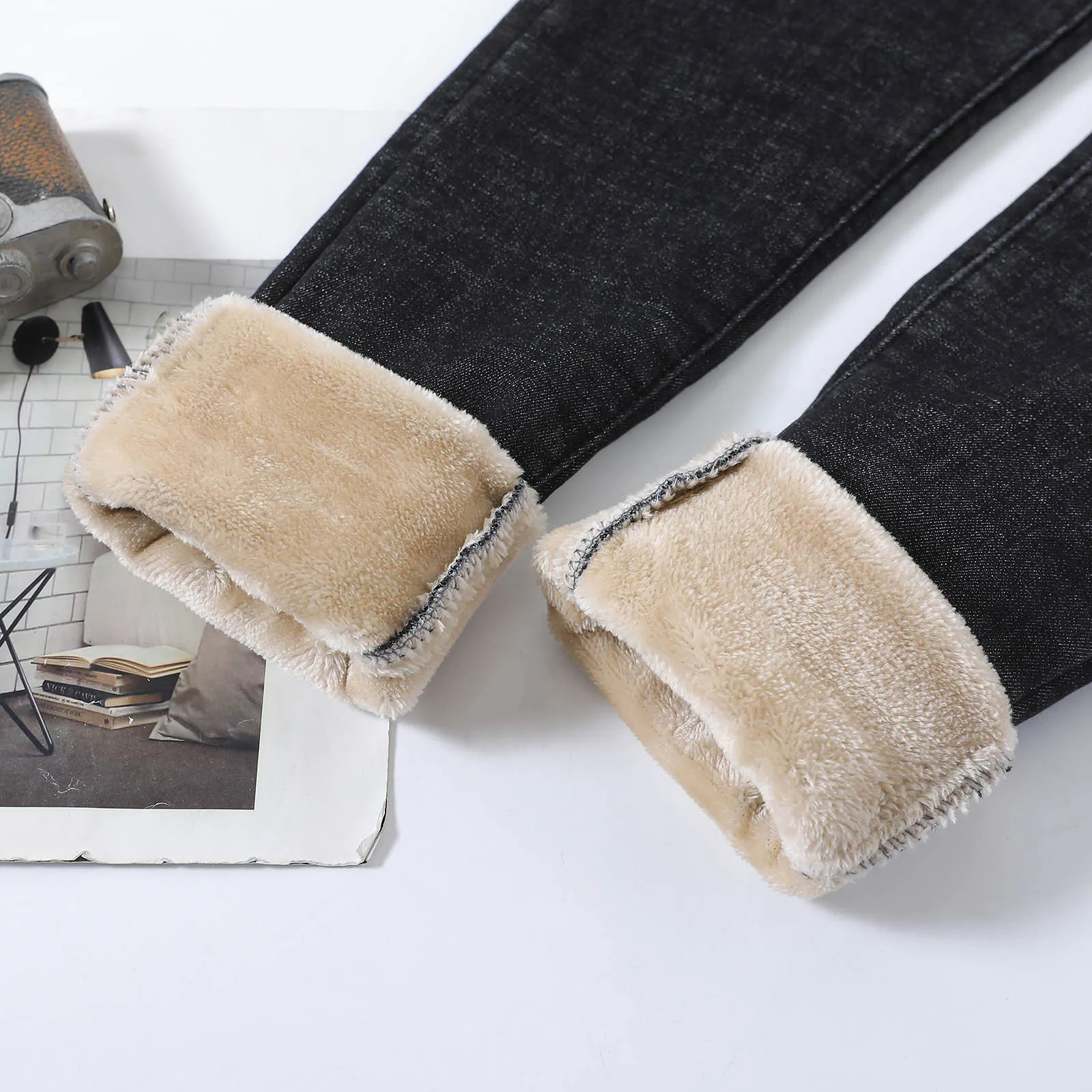 1. Особенности:Джинсовая тканьФланелевая ткань,Повседневный, трендовый и модный дизайн,Джинсы,ЗимаШтаны.