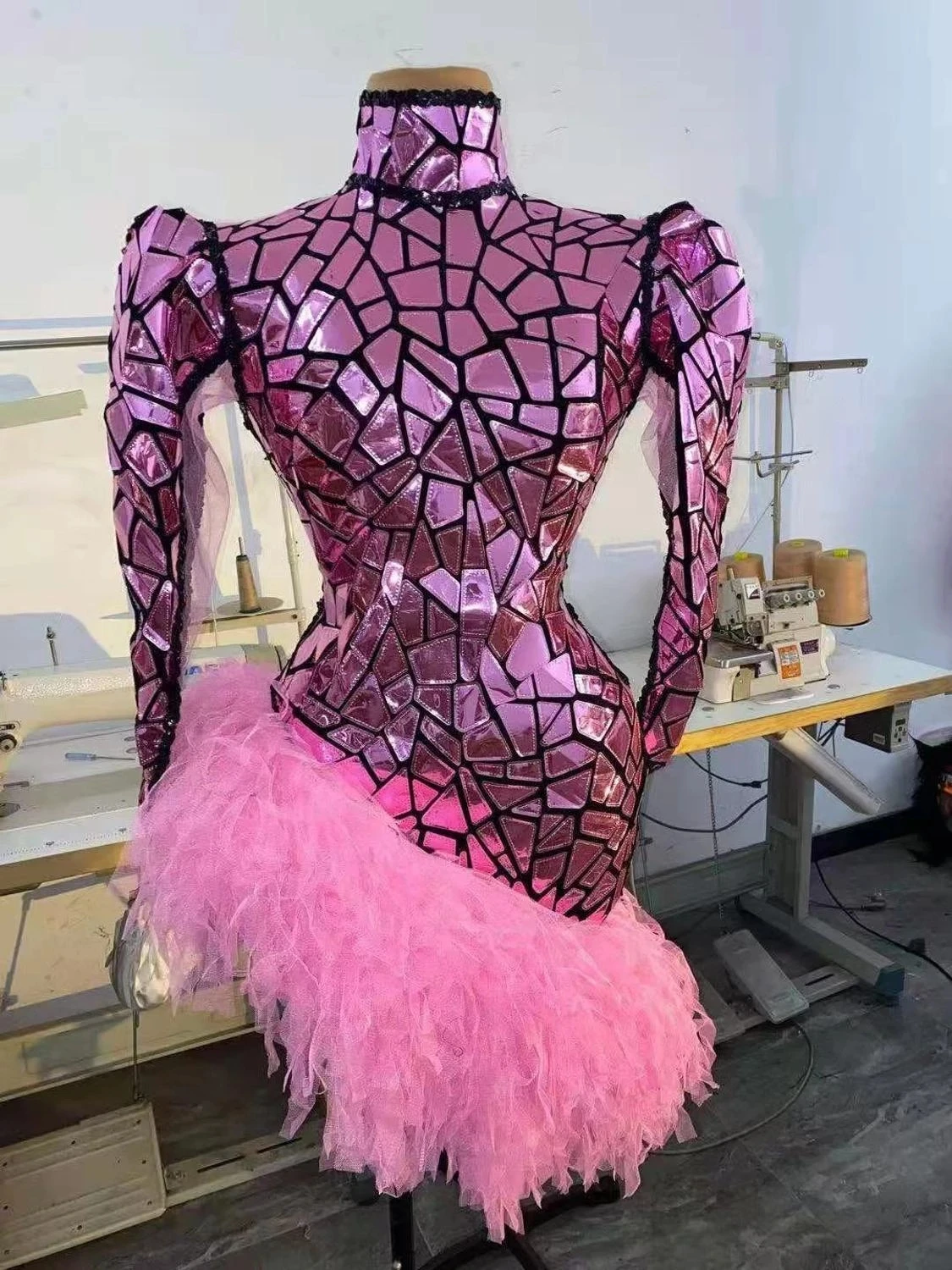 Блестящее розовое лазерное платье, певица, сцена, танец, ГОГО, сексуальное платье для выпускного бала, латинский танец, сцена, короткое платье, Клубная одежда для выступлений