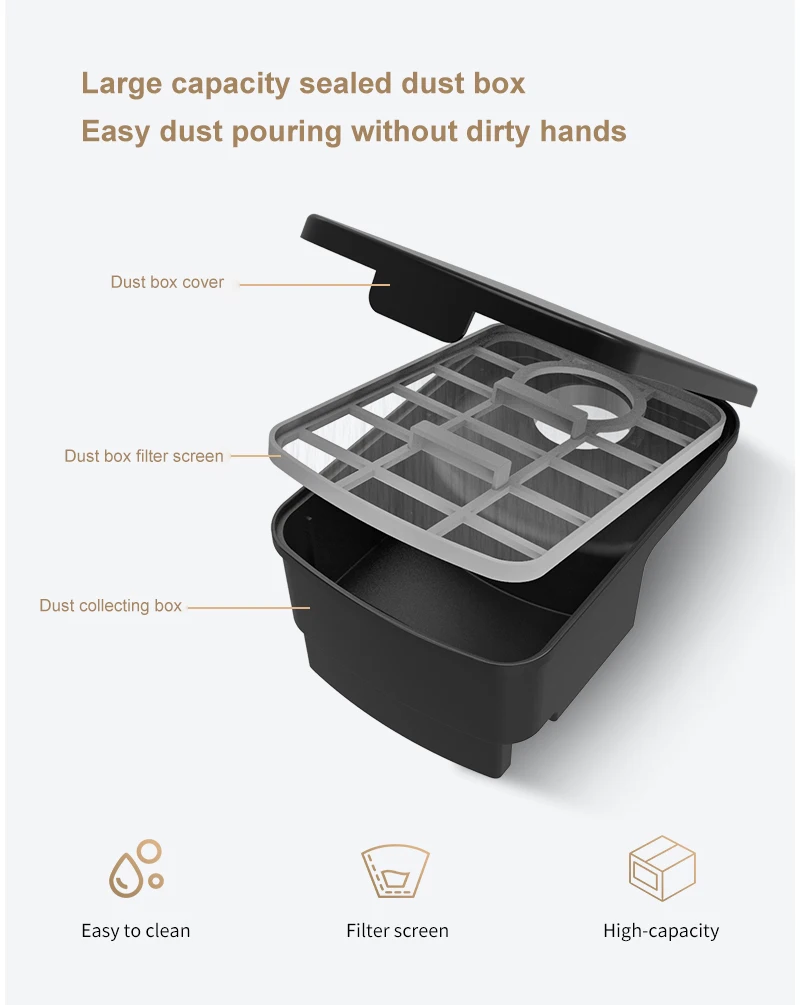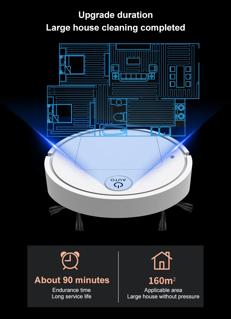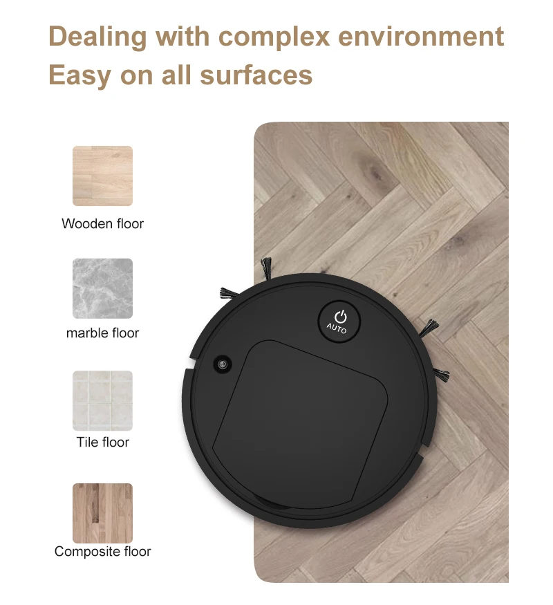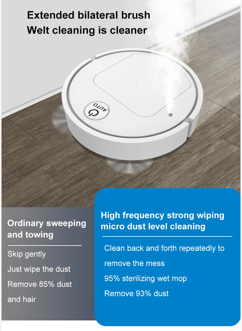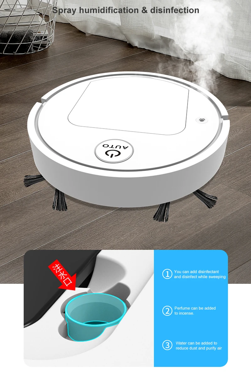 2. Интегрированная всасывание, подметание и измельчение, высокая эффективность очистки гарантируется; Одна кнопка начинает автоматически весь дом, в сочетании с всасыванием три в одном, подметание и измельчение, очистка очистки.