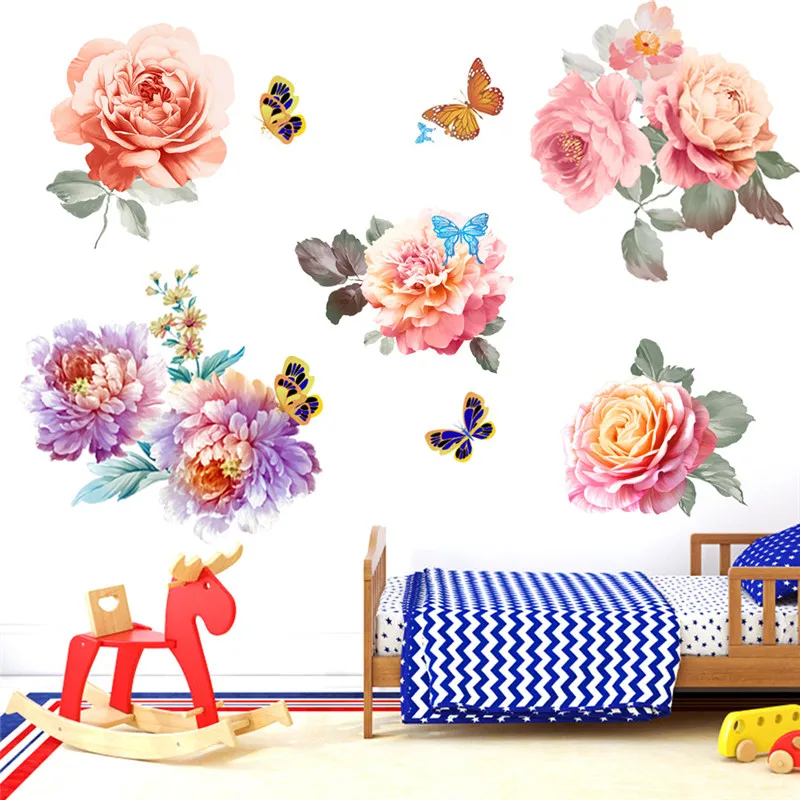Цветы бабочки наклейки на стену для детской комнаты домашний декор для гостиной цветы, пионы на стены наклейки для спальни декоративные наклейки Муро