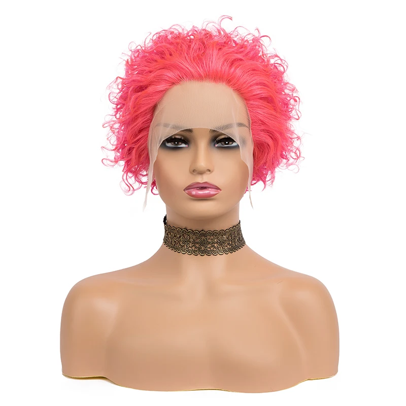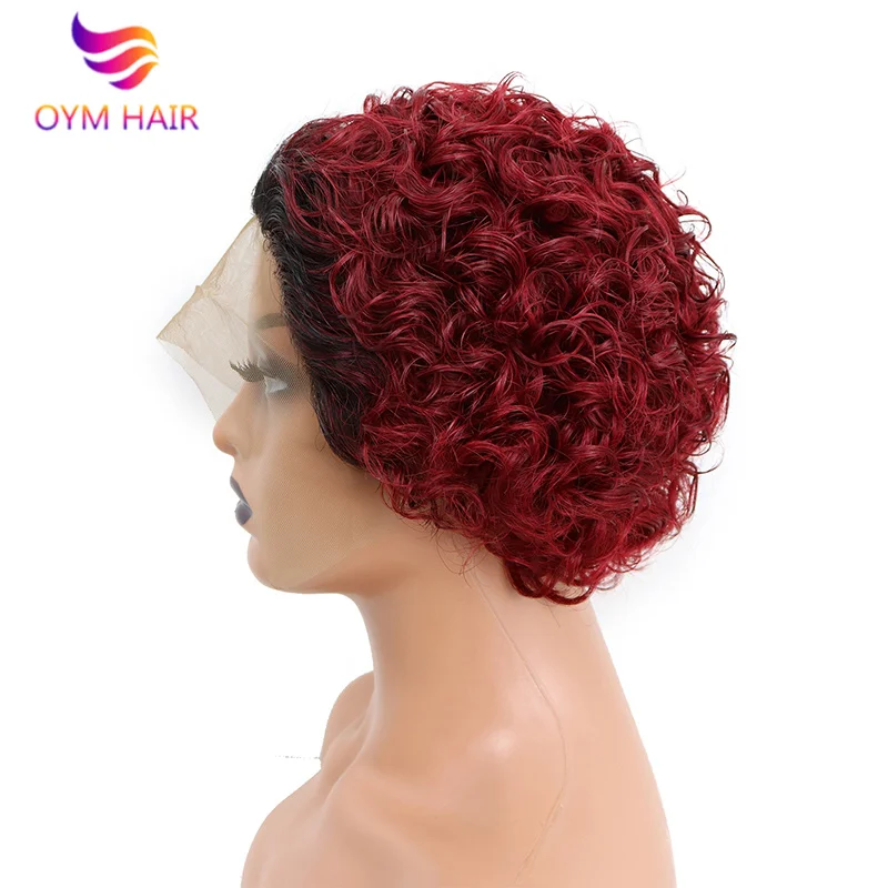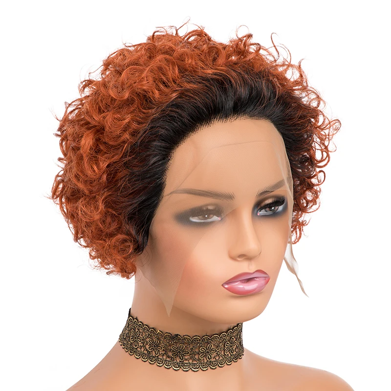 Парик Pixie Cut, Короткие вьющиеся человеческие волосы на фронте, парики для черных женщин, бразильские парики для волос 13x1, прозрачные кружевные парики
