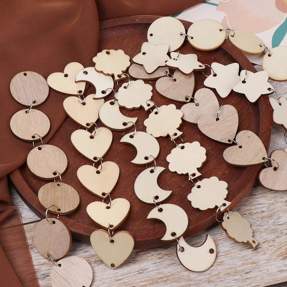 100% Brand New and High Quality Design: Wooden discs + connecting rings Material: Wooden discs + Metal rings Color: Natural Wood Color Size:3*3cm Pattern: Star, Heart, Round,Moon,Tree Quantity: 50pcs wooden tags + 50pcs rings Note: 1.Transition: 1cm=10mm=0.39inch 2.Please allow 1-2mm error due to manual measurement. pls make sure you do not mind before you bid. 3.Due to the difference between different monitors, the picture may not reflect the actual color of the item. Thank you!