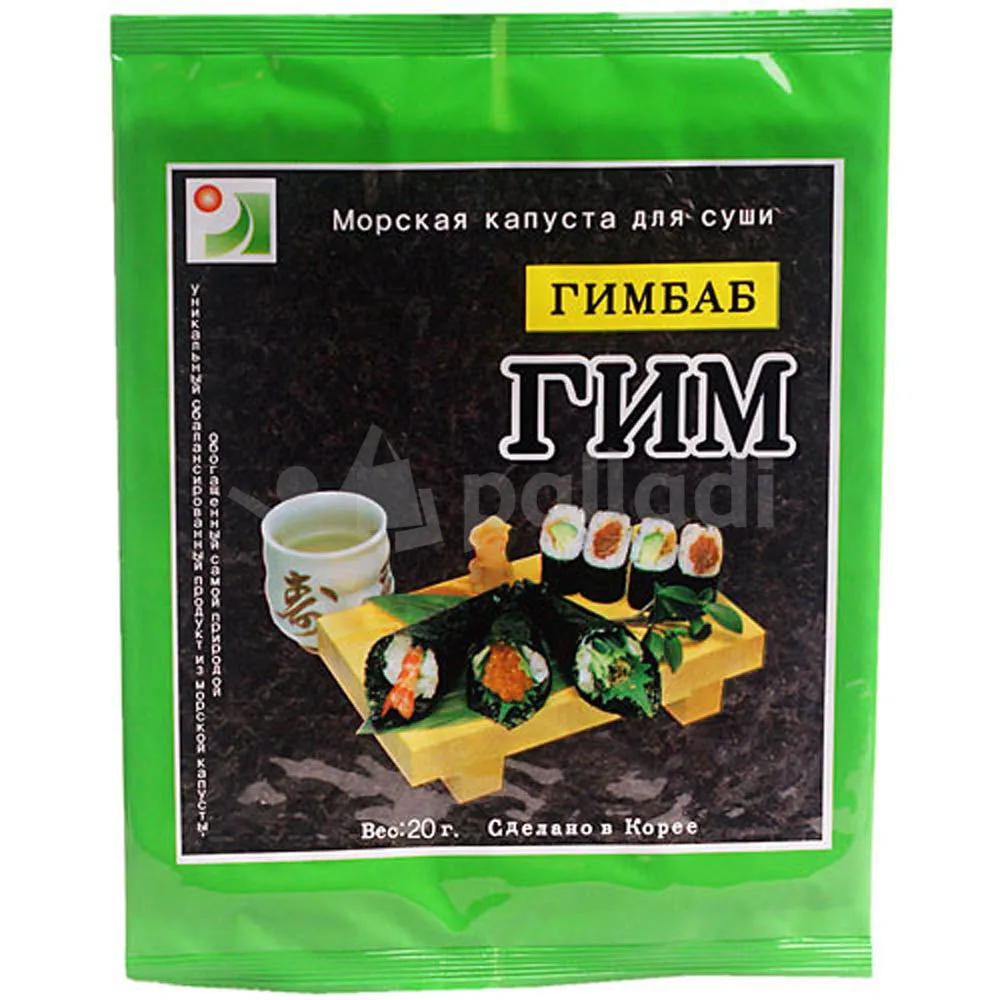 Уникальный сбалансированный продукт из морской капусты, обогащенный самой природой. Нори, или Гим содержат йод, железо, кальций, фосфор, витамины A, D. Состав: морская капуста, сушеная 100%