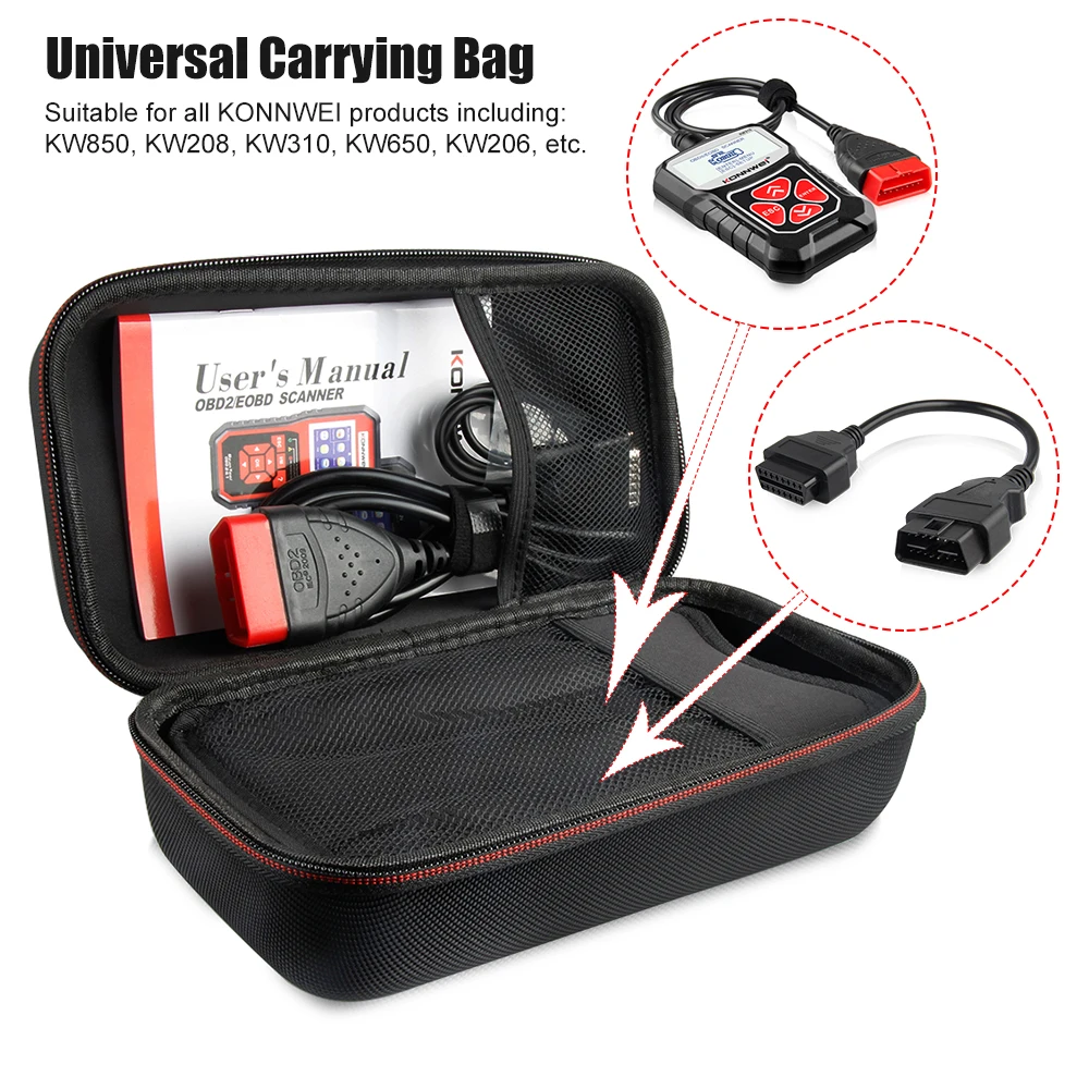 1. 【Универсальный защитный чехол 】 чехол для переноски всех серий продуктов KONNWEI, включая KW310, KW208, KW850, KW650, KW206, KW681, KW210, KW450, KW510 и т. д. Также совместим с другими диагностическими инструментами, такими как сканер Foxwell, Ancel и Atuel obd2 и тестеры аккумуляторов.