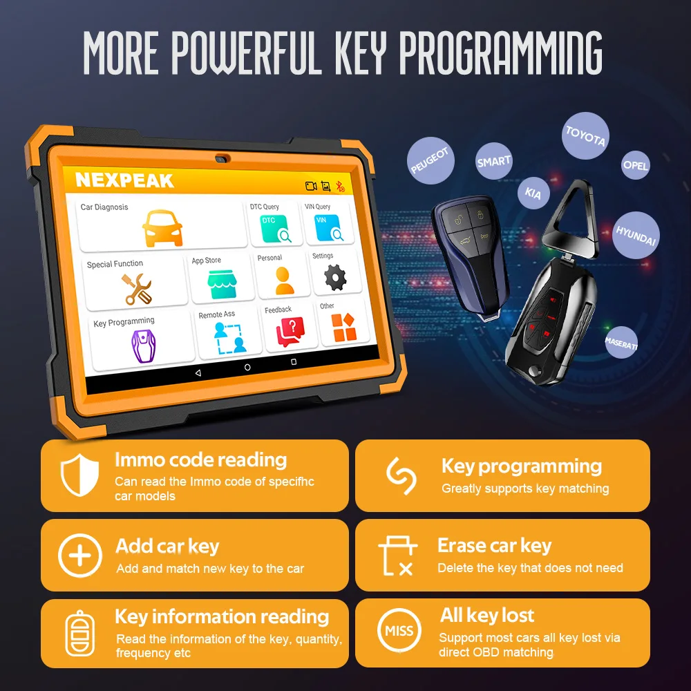 NEXPEAK K1 Ultra OBD 2 Автомобильный диагностический инструмент Поддержка автомобилей по программированию ключей