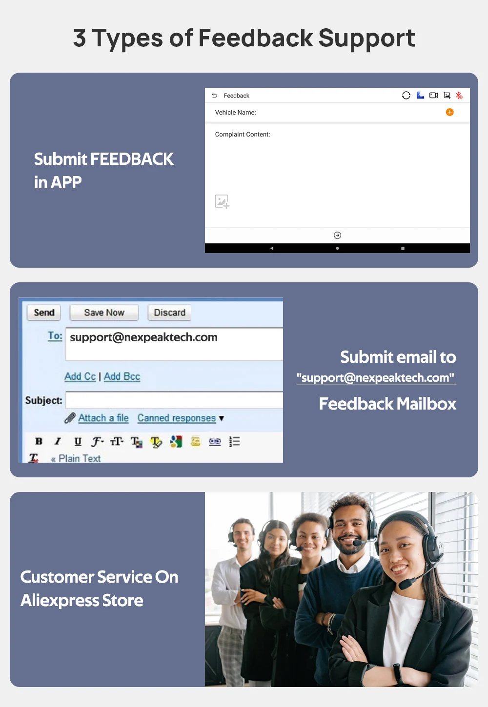 2. Отправить электронное письмо на "support@nexpeaktech.com" "отзывы почтового ящика