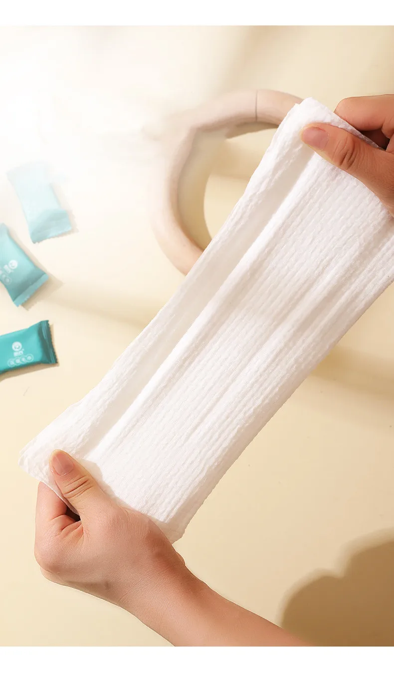 Этот продукт изготовлен из чистого спанлейного хлопкового нетканого материала. Он деликатный, мягкий, удобный, без катышков, без коллапса, с сильным поглощением воды, и может быть естественно деградирован. Подходит для очищения и ухода за лицом, красоты и удаления макияжа, а также может использоваться для чувствительной кожи.