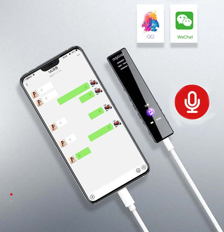 Регистратор поддерживает запись для Weichat или для QQ звука в записи с помощью микрофона.