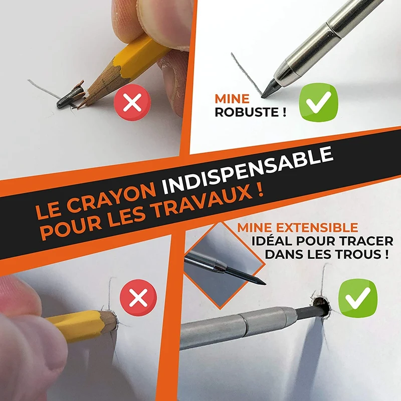 ERGONOMICS AND OPTIMAL HANDWRITING: Compared to conventional carpenter pencils, this mechanical pencil is ergonomic. It has been designed to fit the shape of the hand thanks to a larger diameter to improve grip. This way, the carpenters pencil does not slip out of the fingers and repetitive tracings cause less pain. Not forgetting its tracing tip and its holder to quickly attach it to the pocket. Gain in efficiency with this great carpenter pencils!